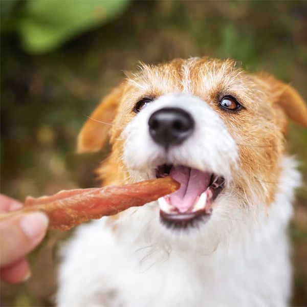 This is the ultimate treat for my two dogs. As soon as they hear the container start opening they run from the other rooms. Since I keep the container on the kitchen table as soon as they wake up they go running into the kitchen and start jumping up and down for their morning treat.With the crunchy chicken on the outside & the rawhide chew stick on the inside my dogs love, love, love these.