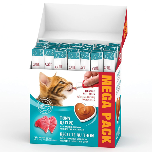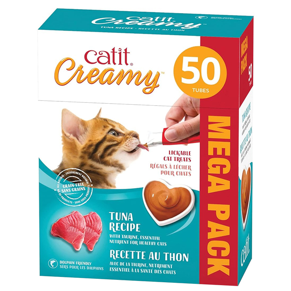 Catit Creamy Lickable Cat Treats Mega Pack are made with Tuna, taurine, and essential nutrients for an all natural, tasty treat your cat will love. Made in Thailand. Contains 50 - 0.5oz tubes.