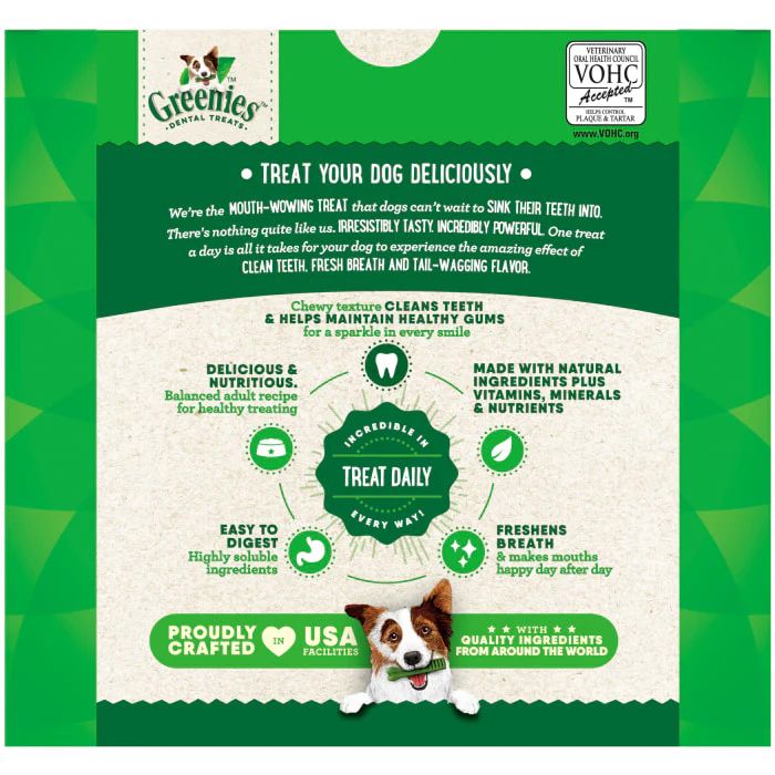 Greenies Dental Chews for dogs are delicious and highly palatable with a chewy texture that helps clean teeth down to the gum line. Teenie size is great for dogs 5-15 lbs. Made in USA.