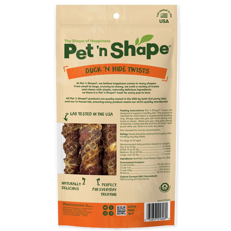 I had ordered 6 bags Pet n Shape Duck skewers and the alot of the Pet n shape duck hide twist dog treats.There was only one box delivered which was the skewers. Never received the pet n shape duck hide twist.Such a disappointment.Will never order from Petguys.com again unless they either deliver my treats or refund my money